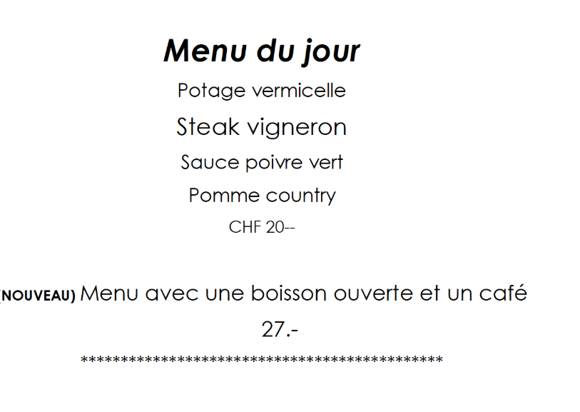 Menu du jour